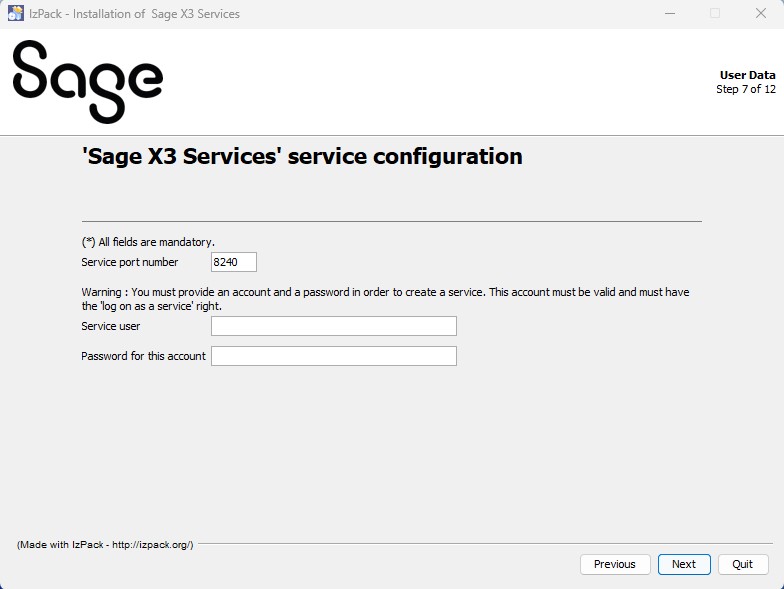 Sage X3 Services installation