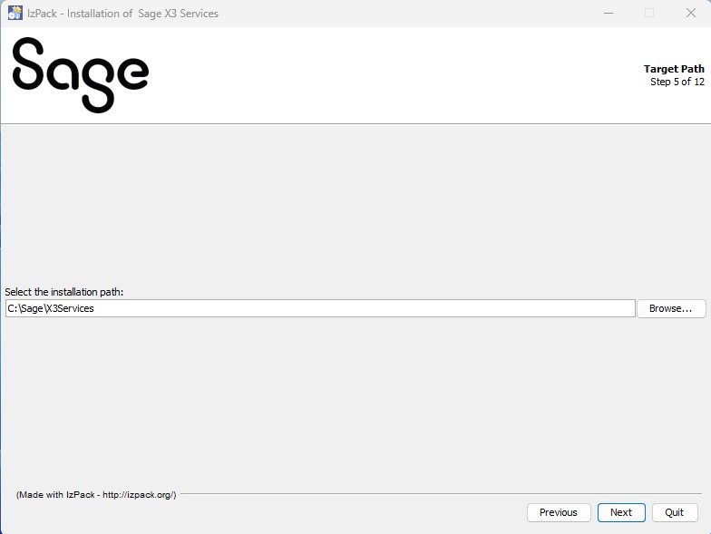 5. Select the installation path where you want to install Sage X3 Services.