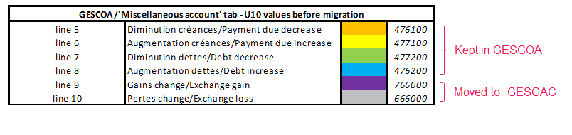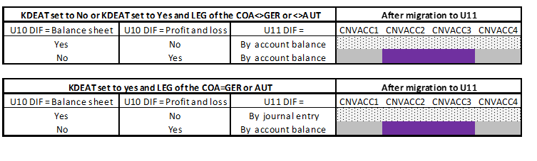 If the "KDEAT" activity code is enabled, the accounts set in the previous version have the following values in versions 11 and 12: