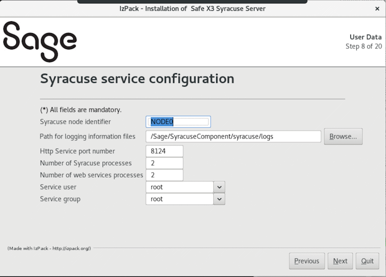 Note: Setting two Syracuse processes enables the load balancer mode (or nanny mode). - The information for the system account that will be used to run the service.