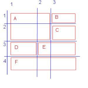 the position, line, column serve to place the sections with respect to the others. It is necessary to simulate a grill for the section design, then indicate for each, the positioning by the use of coordinates (line.column) of its upper left angle, the occupation by the number of lines and the number of columns in this fictional grill. For example: