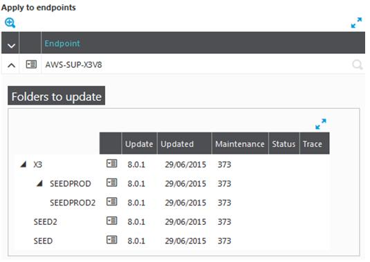 This grid can be filled with multiple selections from the Endpoint (Administration > Endpoints) list. You can click the arrow next to the reference folder to display the list of folders it contains: