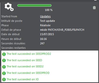 This function is executed in asynchronous mode. It tests whether the conditions required to apply the patch are fulfilled for each folder in the list. It also checks the version dependencies. A popup displays the progress of the execution: