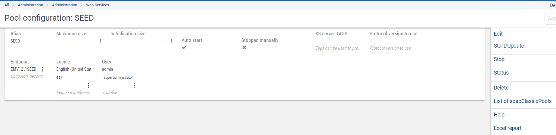 - Maximum size: Maximum number of SOAP web services sessions (1 is perfect for a test endpoint)