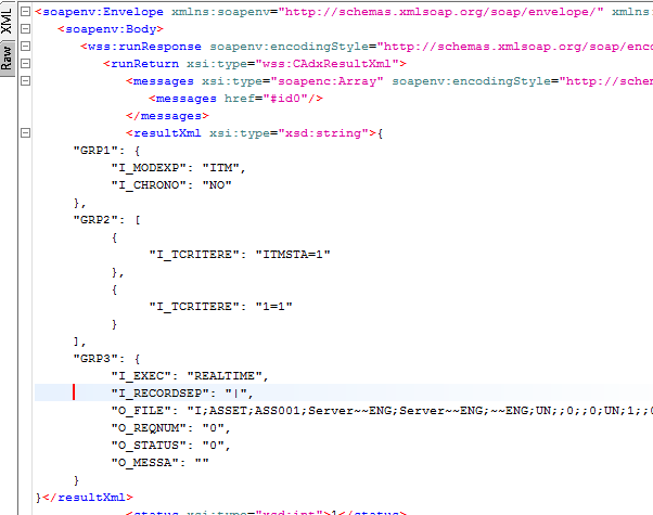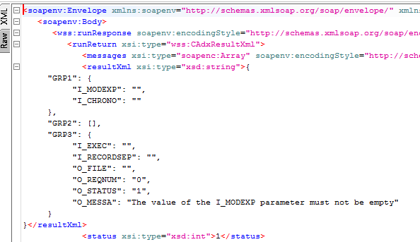 adxwss.optreturn = JSONorXML: Web service result formatadxwss.beautify = trueorfalse: Gives a CRLF in the result of web service