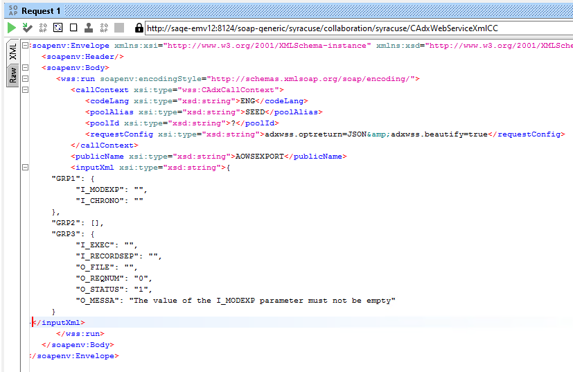 - Open Request1 for the Run web service operation