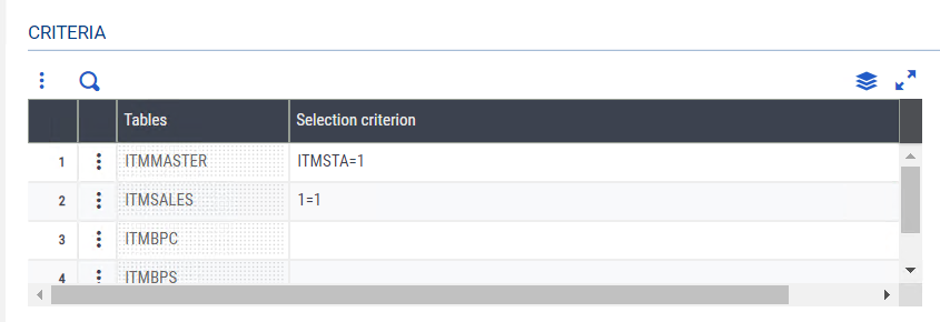 - Array of I_TCRITERE, see the Export interactive function