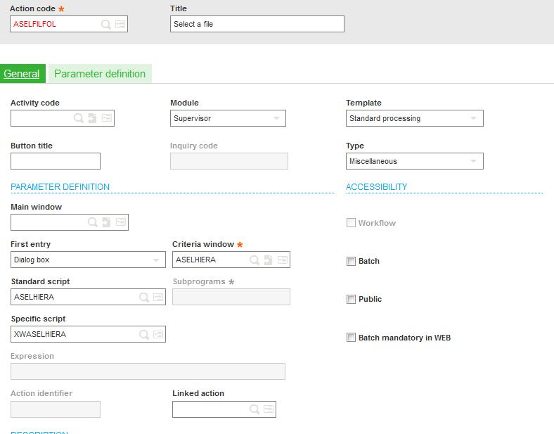 ASELFILFOL is a dictionary action that enables selecting files or directories, and uses a library developed for the linked documents.