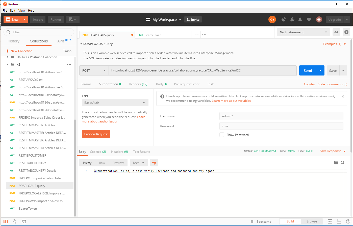 The authentication failed: a wrong password or wrong login was sent in the request Auth data.
