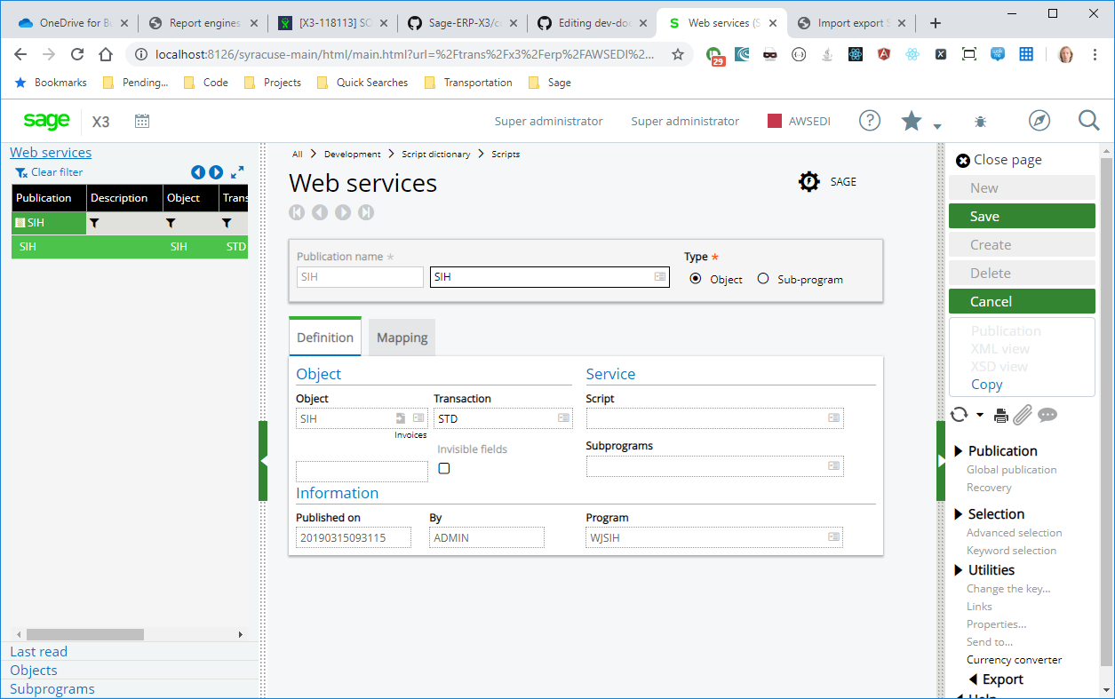 Sage X3 uses RPC/encoded style to be able to consume published objects and subprograms from the supervisor as Web services. Web services are tightly linked to the application code.