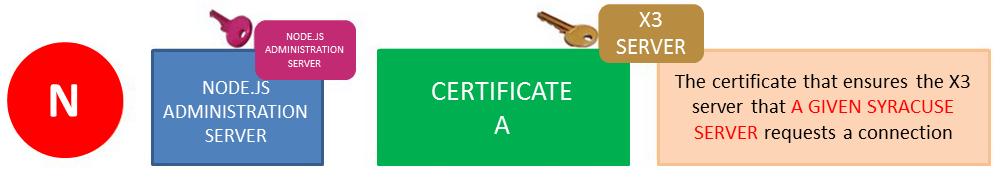 This step secures the connections to Sage X3 and it can also secure the connection between node.js servers. Every time a connection request is sent from a node.js server to a Sage X3 server, encrypted data is sent. The Sage X3 server can identify the server that connects using the public key and ensure the authentication. This is why there are as many certificates as there are node.js servers.