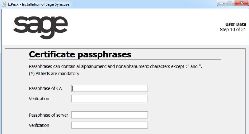 - Enter a passphrase for the private key of the certification authority and another for the server certificate.