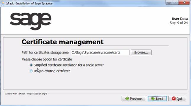 - If you selected Simplified certificate installation for a single server: