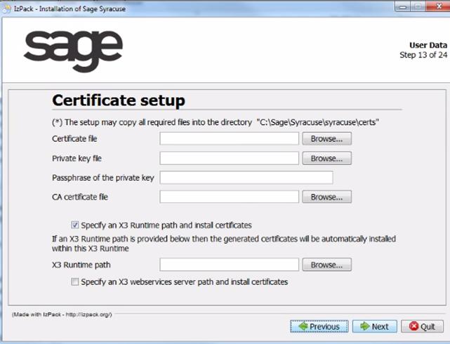 Note that the Sage X3 servers will only get the public key, without the certificate itself or the private key.