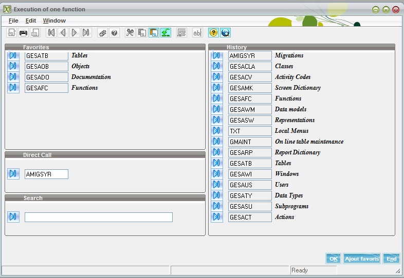 This operation can be launched from the Classes menu in the Sage X3 folder. The function code is "AMIGSYR" and can also be launched by using the F7 shortcut and typing the AMIGSYR function code.