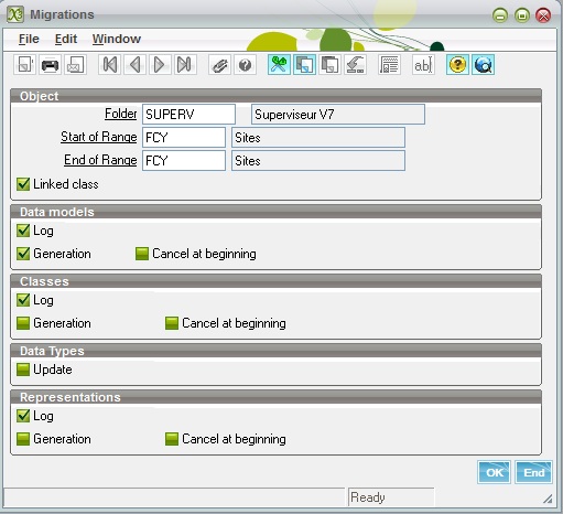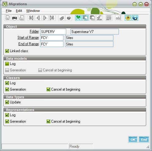 The purpose of this program is to ease the transition of the meta data used in Sage X3 version 6 (in screen, windows, tables, and objects dictionary) to the new classes and representation dictionary.