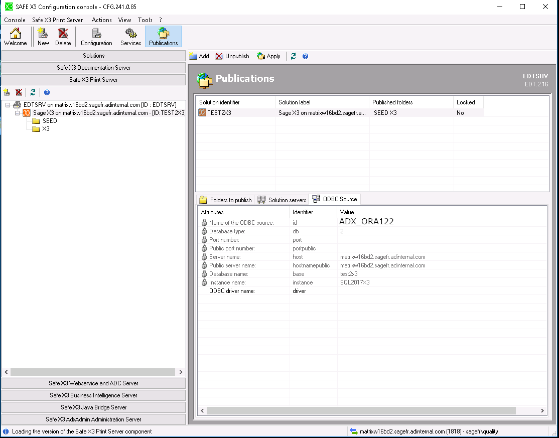 If your Sage X3 solution is named ORA122, you need to name your datasource ADX_ORA122.