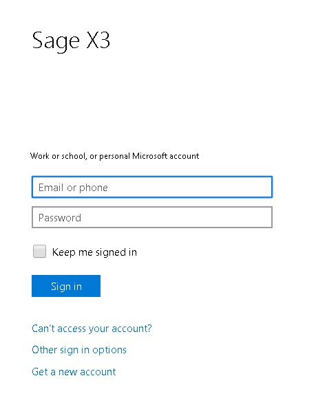 Note: You will be authenticated until you log out of your Microsoft account, or until you clear your browser’s cookies. As a result, Sage X3 may not ask you to authenticate each time.
