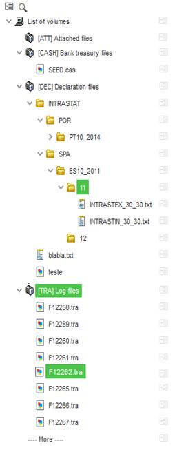 Clicking on a volume opens the volume, lists all the files directly located in the volume, and gives the list of the sub-directories without listing them. |