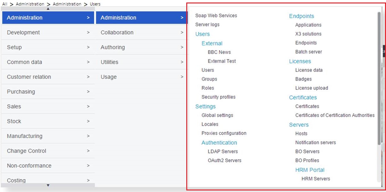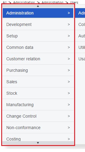 The left-most link (All) in the breadcrumb chain displays a vertical list of all of the user�s modules: