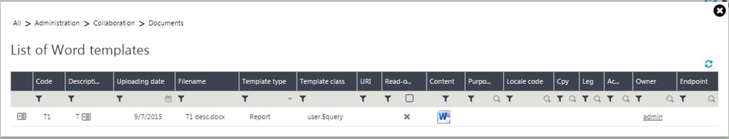 * Some popups. An example of a read-only breadcrumb can be seen on Word Template lookup screens: