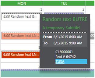 When the mouse rolls over any event, a popup displays all details as shown in the following image:
