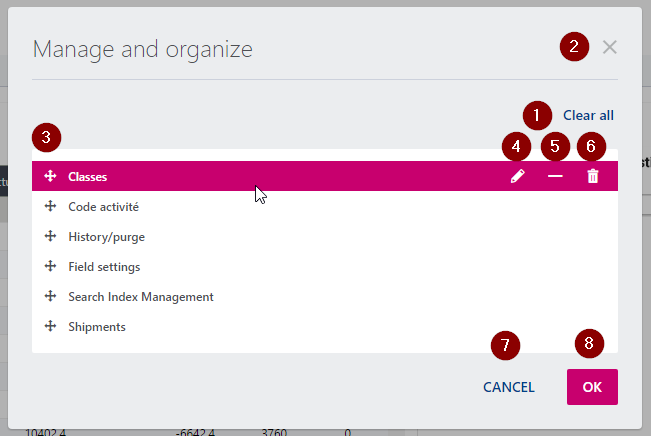 Using the Manage bookmarks (4) link at the bottom of the list opens the modification mode to modify and reorganize the bookmarks.