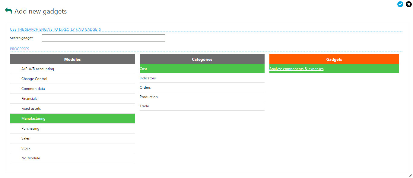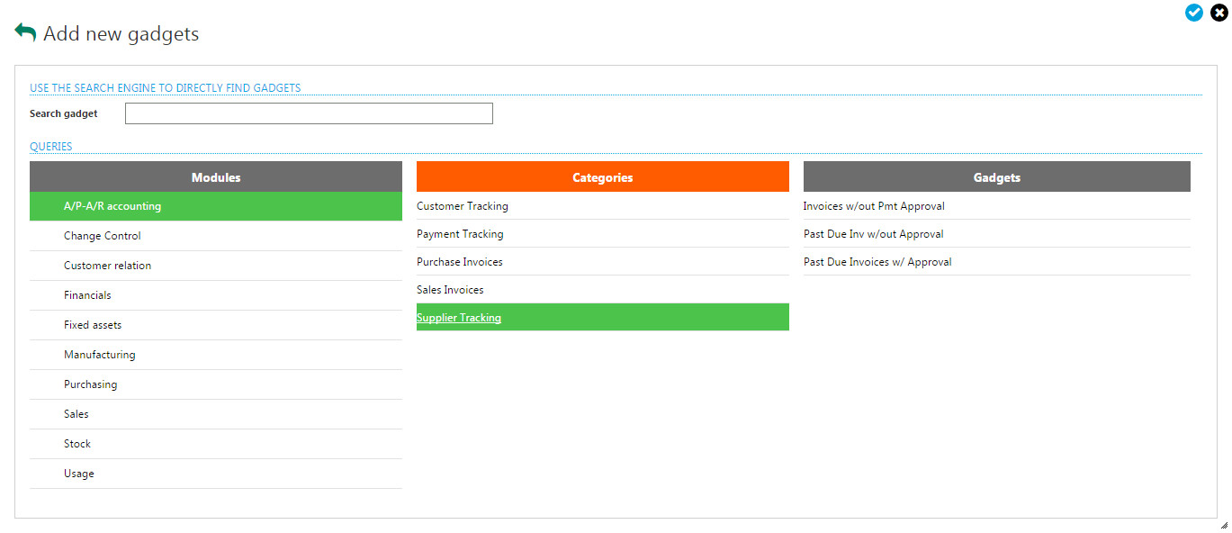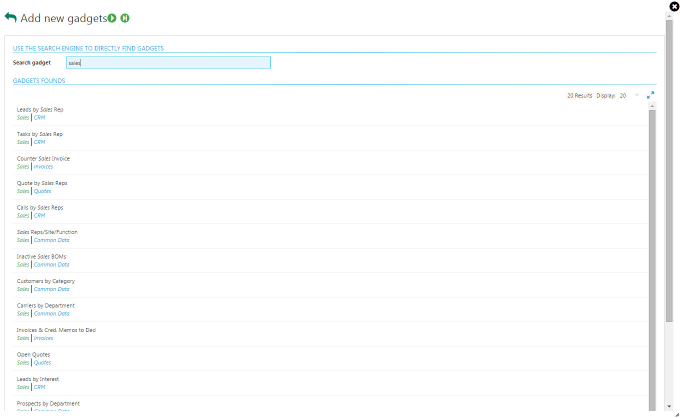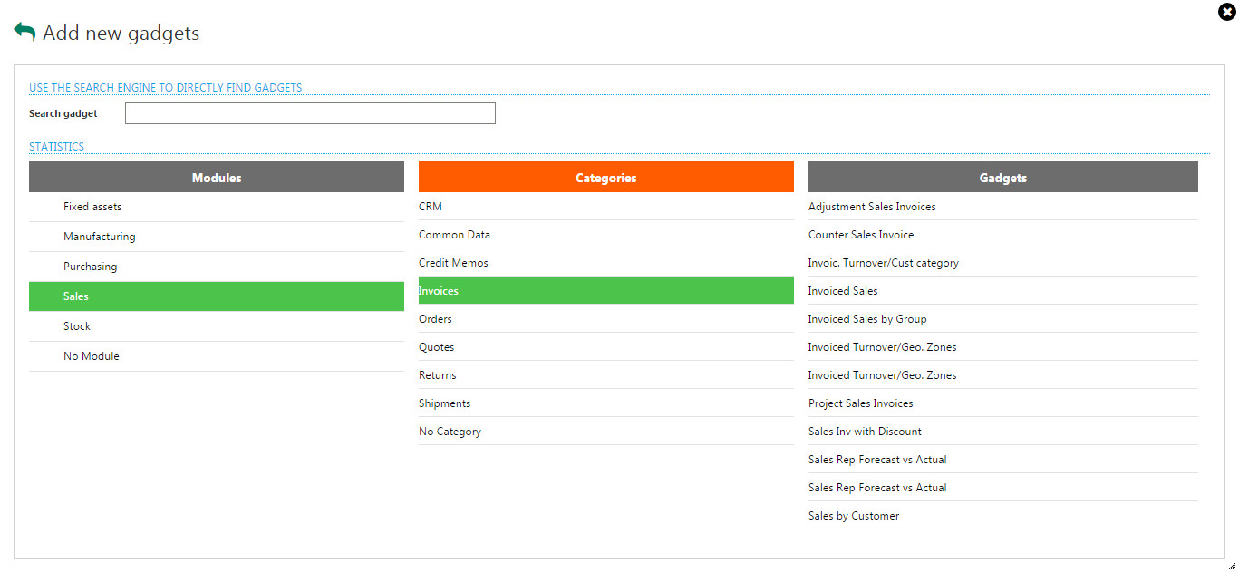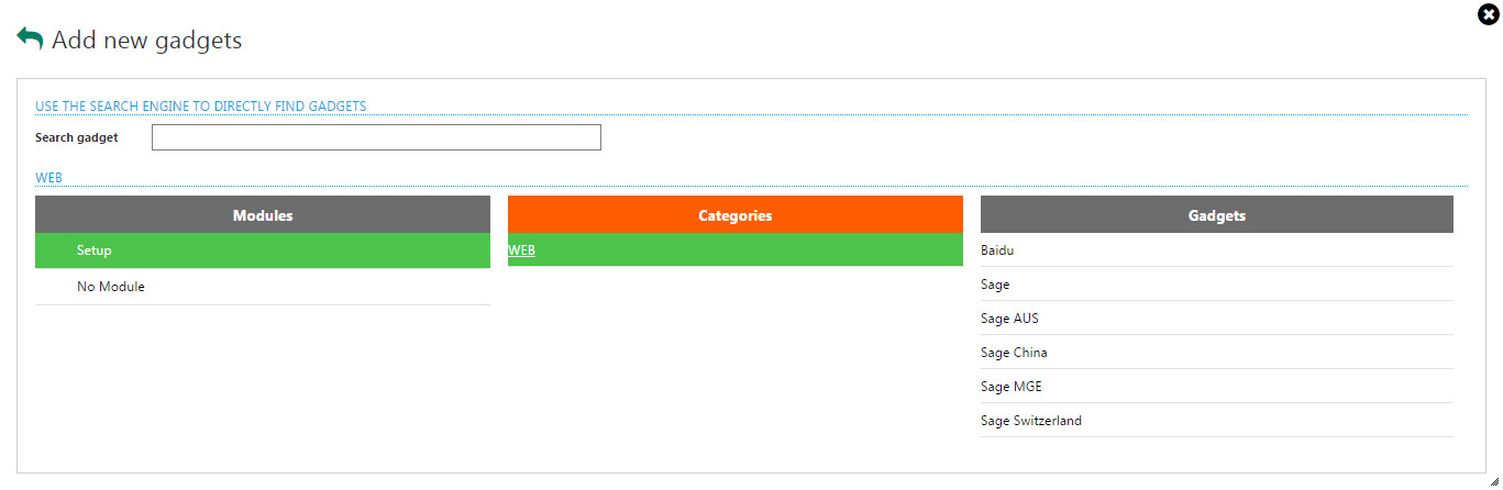 On your landing page, you can click the + icon to add gadgets in your portal. The different pages appear in this process: