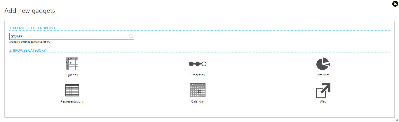 In the first page, after the selection of the endpoint, choose between the different gadgets available: