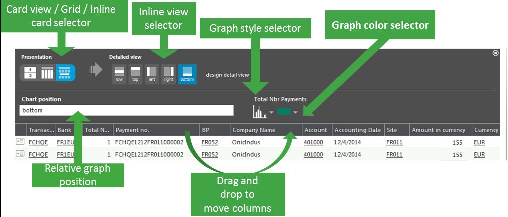 - A group of icons to select the grid mode that can be a simple grid, a card view, and a combined "inline" card view inserted between the lines. The Inline selector view allows you to choose the relative position of the inlined cardview.