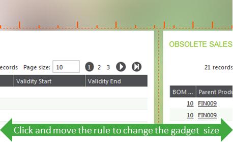 | When multiple columns of gadgets are present, you can change the size of the gadgets by sliding the rules that are made visible if you click the dotted rule that appears when the mouse hovers over the vertical boundary between two gadgets, as shown in the following screen: |
