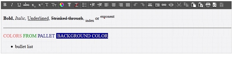 - Bold, Italic, Underline, Strikethrough, Subscript, Superscript