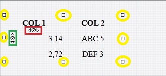 - The square handles surrounded by yellow circles can be used to change the dimension of the table.