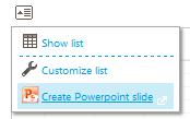 On the pages where an array of numbers is present and a graphical representation is displayed, a popup window allows you to create a Microsoft PowerPoint slide. This window appears as follows: