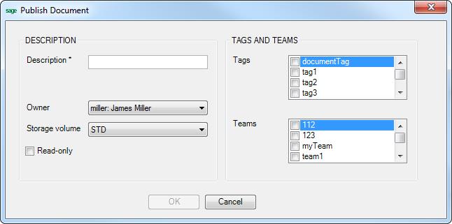 Selecting the Publish as document will then allow you to enter the different parameters associated with the document in the following page: