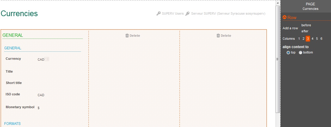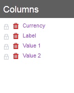 The column choice allows the user to create columns where fields will be placed. The first column contains the current fields, and the next columns are empty and used as placeholders to move other fields in. You can delete columns by click the 'Delete' icon.