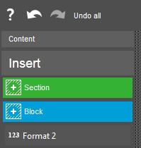 Another way to create a new section or block is to use the left panel with the Insert option. The following options are displayed: