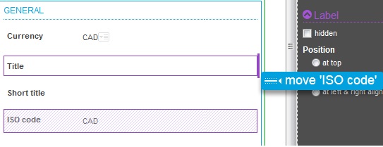 The same rules for field labels display can be set up, but only for the fields in the current section: label hidden, blank or visible, and label position at top or at left with left or right alignment.