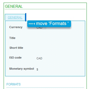 The section can be displayed as a stacked section or as a tab.