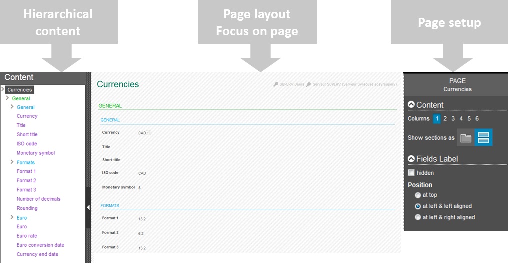 This section defines default rules for all the field labels on the page. They can all be hidden, displayed at the top of the field, or displayed at the left of the field, and wherever they can be left or right aligned.