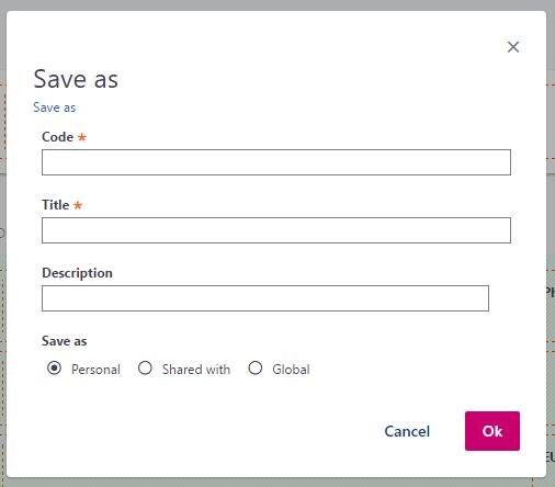 - Save as: Allows you to define the characteristics of the authored page in a pop up window that appears. At the first personalization of a page, the window will also appear if the Save option is selected.