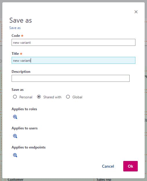 When several authored variants are relevant to a user with a role and on an endpoint, the variant that matches the different criteria the best is displayed; but the user can select another variant by clicking the view field.