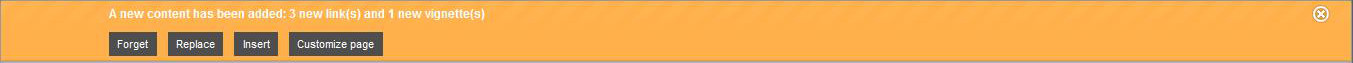 | Insert | Inserts the added elements in the existing personalized portal. The process is the same as in the previous case (ignoring the displayed modification, saving it, or returning to the personalization mode). | |