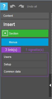 | Customize page | Returns to the personalization mode with the current portal. When this happens, you can manually retrieve the added elements from the Insert tab on the left bar. In this screen, two tabs are available: